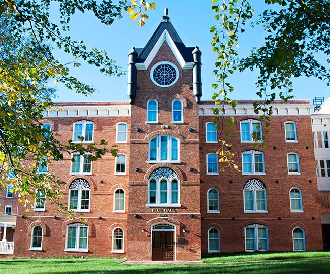 Pell Hall is the oldest and most distinctive of the residence halls in its collection of double and triple rooms. Named after Converse’s second president, Robert Paine Pell, Pell was renovated in a $9 million project to restore its historic beauty while adapting to the needs of 21st century students. Pell features original hardwood floors, stained glass, a kitchen, several cozy study/hangout spaces, and the Moore Seminar room. Pell is connected to Wilson Hall and our dining room.
